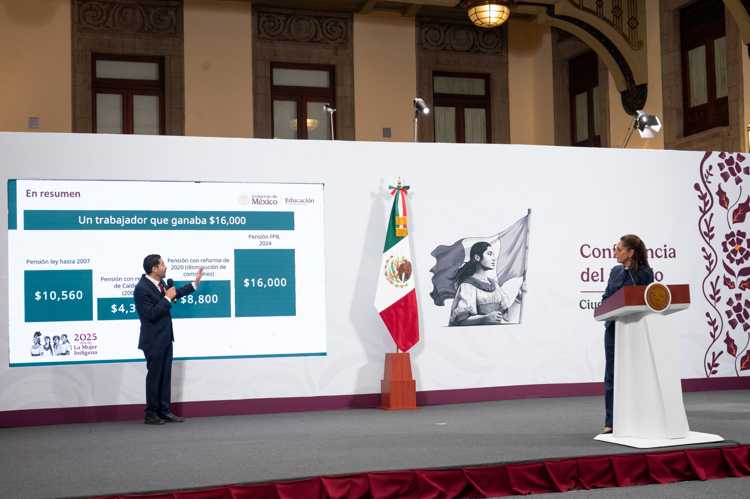Ciudad de México, 26 de mayo de 2025.- La Presidenta Claudia Sheinbaum Pardo resaltó que el Fondo de Pensiones para el Bienestar establece un régimen solidario que garantiza pensiones justas para las maestras y maestros y el cual representa un esfuerzo muy importante por parte del Gobierno de México, ya que gracias a la Austeridad Republicana los recursos que antes se iban a la corrupción, hoy se destinan a las pensiones de los docentes para que se jubilen con su salario completo.