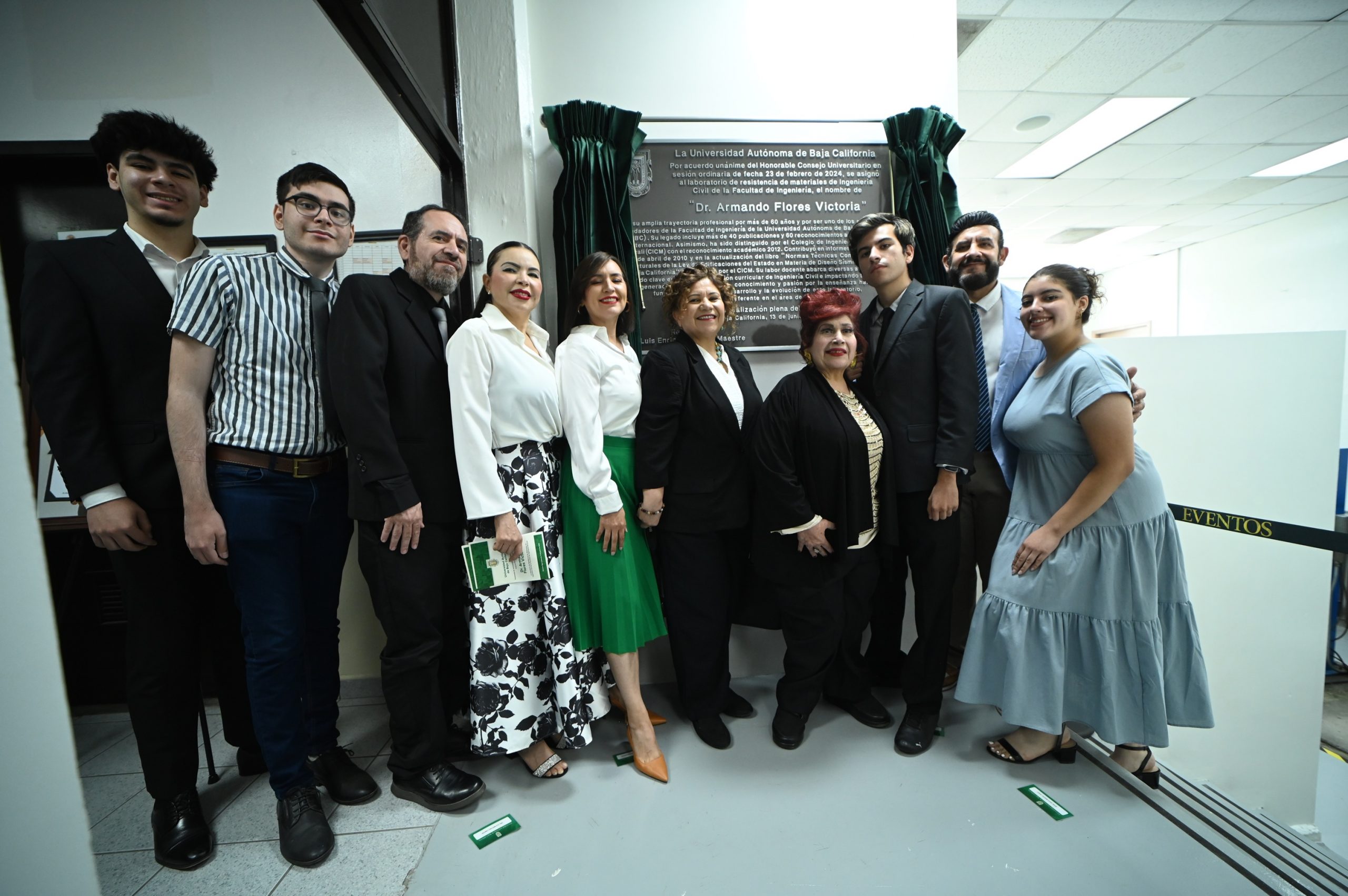 En reconocimiento a su destacada trayectoria académica, científica y humana, la Universidad Autónoma de Baja California (UABC) otorgó, de manera póstuma, al doctor Armando Flores Victoria la distinción al Mérito Universitario, mediante la asignación de su nombre al laboratorio de Resistencia de Materiales del programa de Ingeniería Civil, perteneciente a la Facultad de Ingeniería.