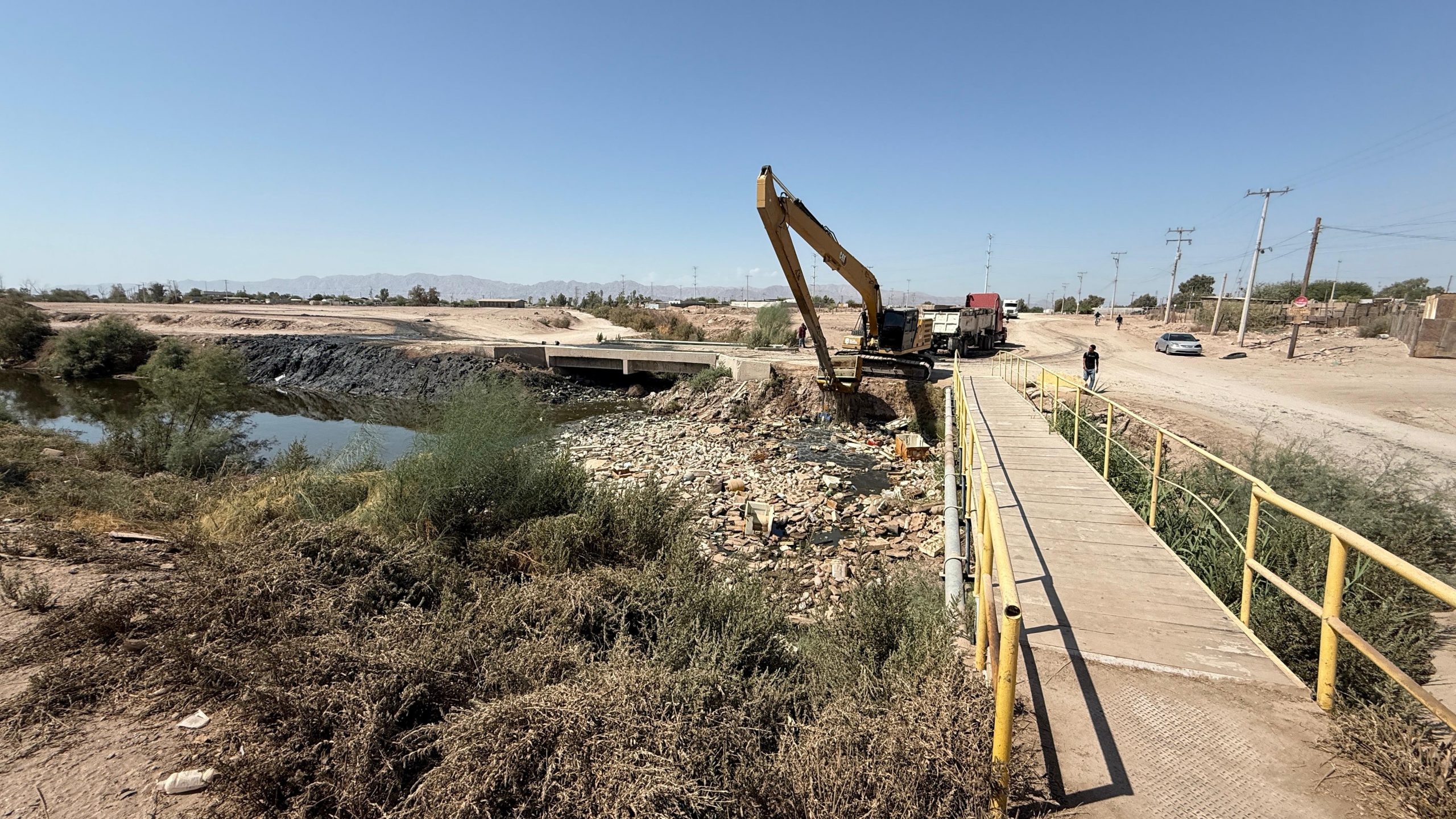 Como parte de sus trabajos permanentes de limpieza y mantenimiento de la infraestructura hidráulica, la Comisión Estatal de Servicios Públicos de Mexicali (CESPM) realizó la limpieza del Dren Colector del Norte, en el tramo correspondiente a la calle Limoneros.