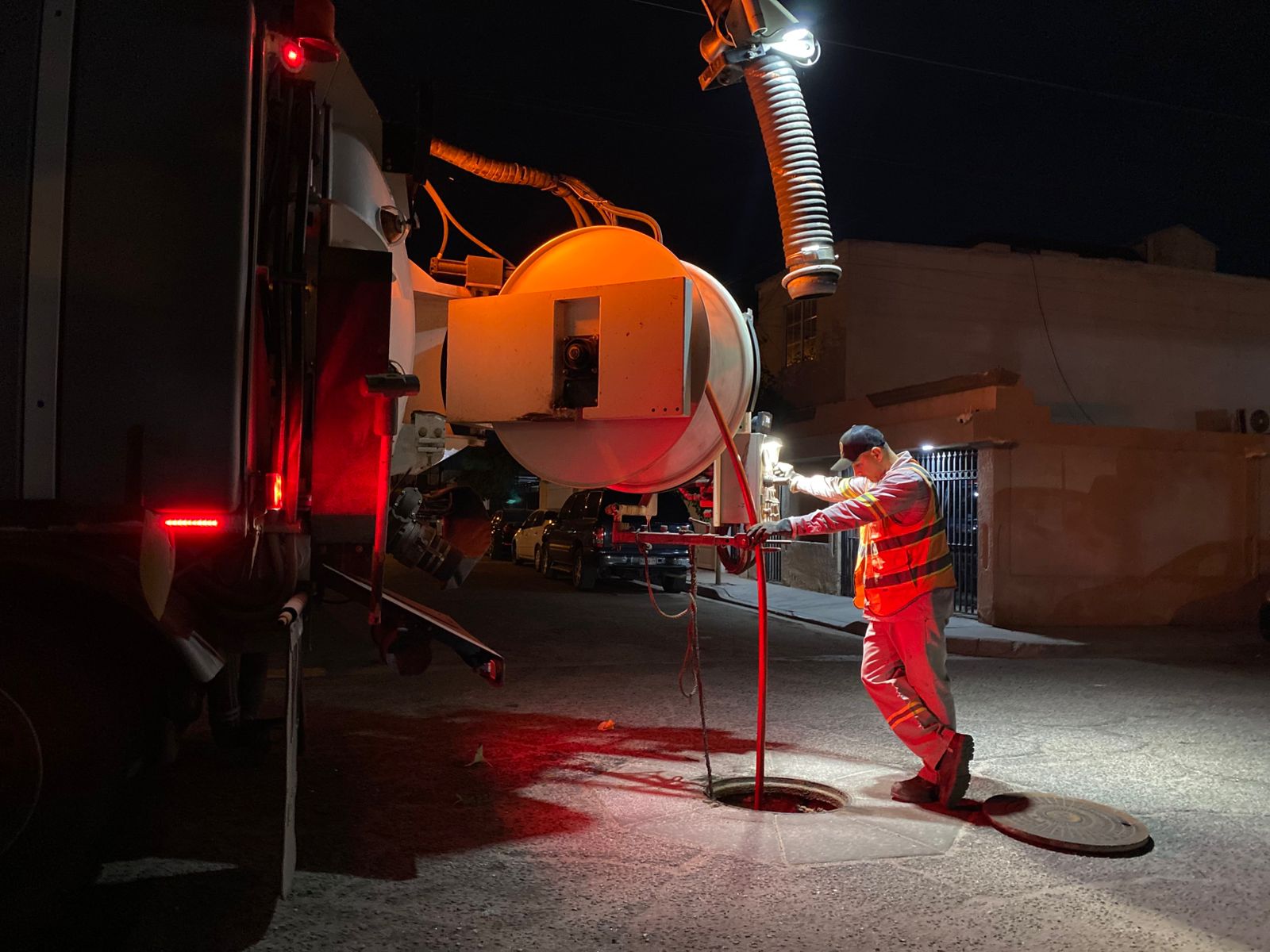 Asimismo, se realizaron maniobras de apertura de pozos sanitarios en puntos estratégicos como Paseo de las Arboledas y en Avenida Oaxaca, entre Viñedos y Colonos, además de la atención en la zona de Misión San Diego de Alcalá, con el propósito de disminuir los encharcamientos en vialidades y colonias.