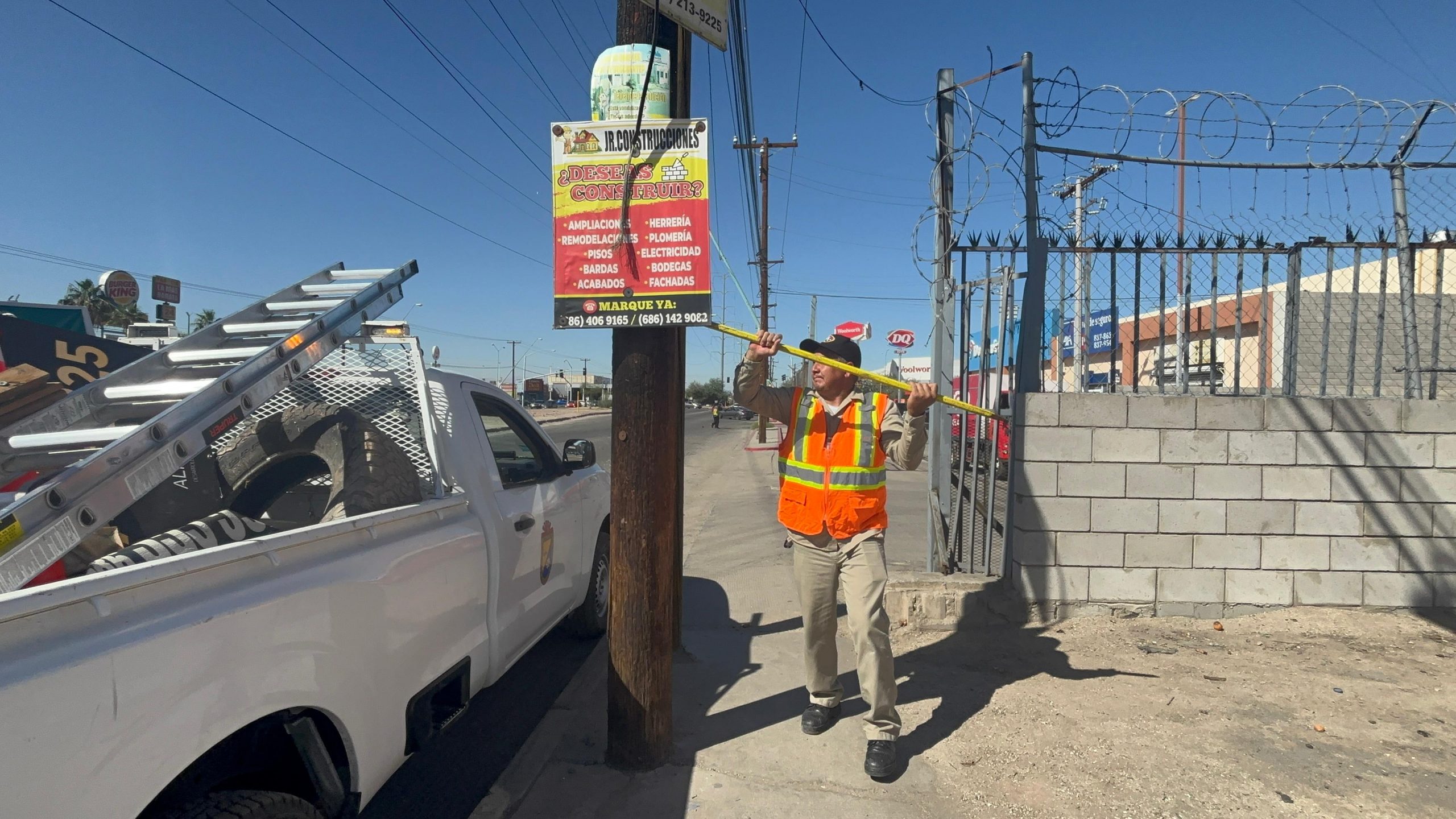 Con el propósito de mejorar la imagen urbana y mantener espacios públicos más limpios y ordenados, el Gobierno de Mexicali inició un operativo para la remoción de letreros colocados de manera irregular en la vía pública.