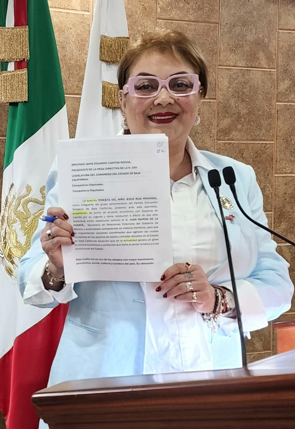 Con el objetivo de agilizar los cruces fronterizos en los puertos de salida y entrada del estado, la diputada Teresita del Niño Jesús Ruiz Mendoza emitió un respetuoso exhorto al C. Juan Ramón de la Fuente, secretario de Relaciones Exteriores del Gobierno de México, y a las instancias competentes en materia fronteriza, solicitando coordinación con sus contrapartes en Estados Unidos de América.