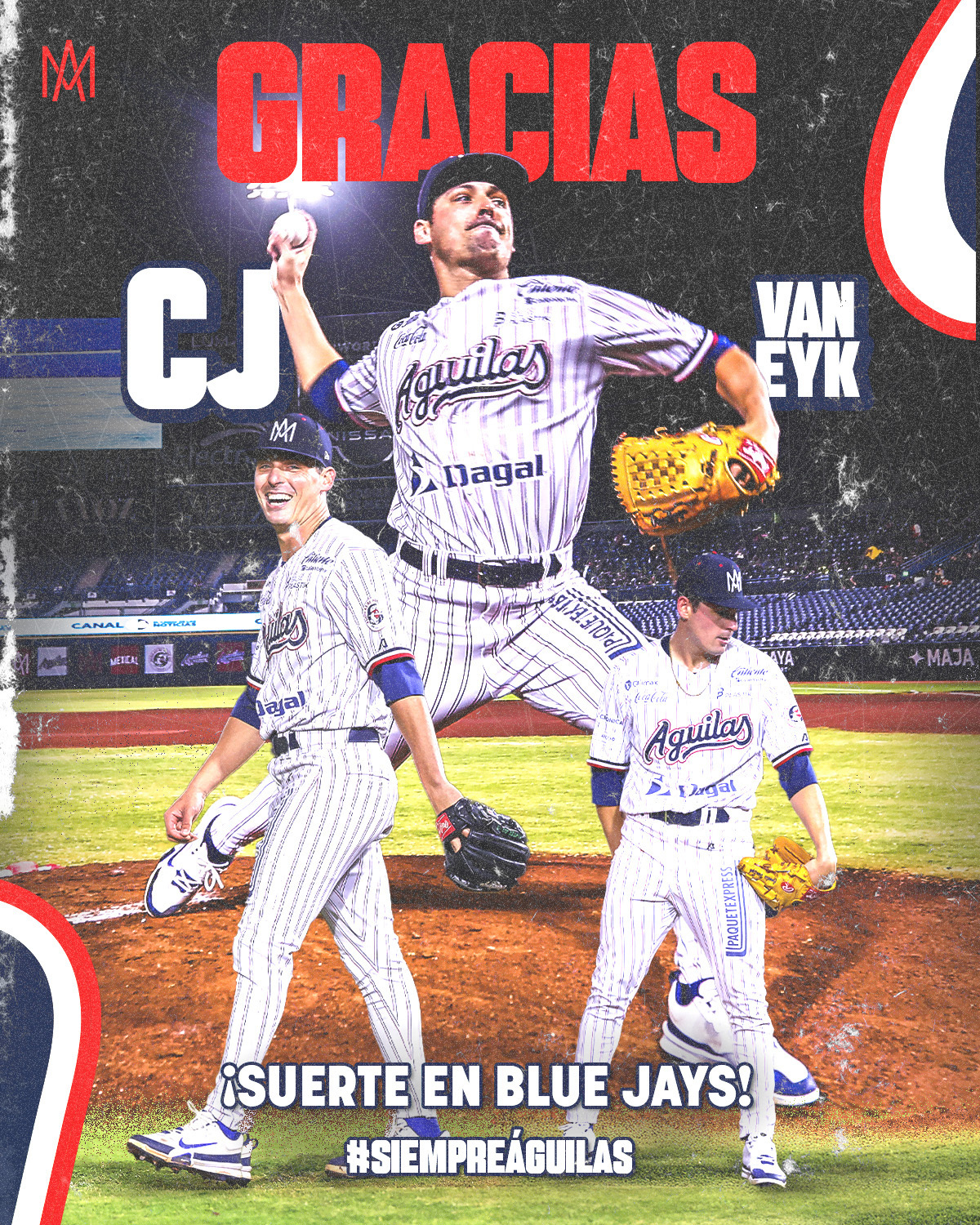 Águilas de Mexicali desea mucho éxito a CJ Van Eyk con su organización Azulejos de Toronto, esperando verlo brillar pronto en MLB.
