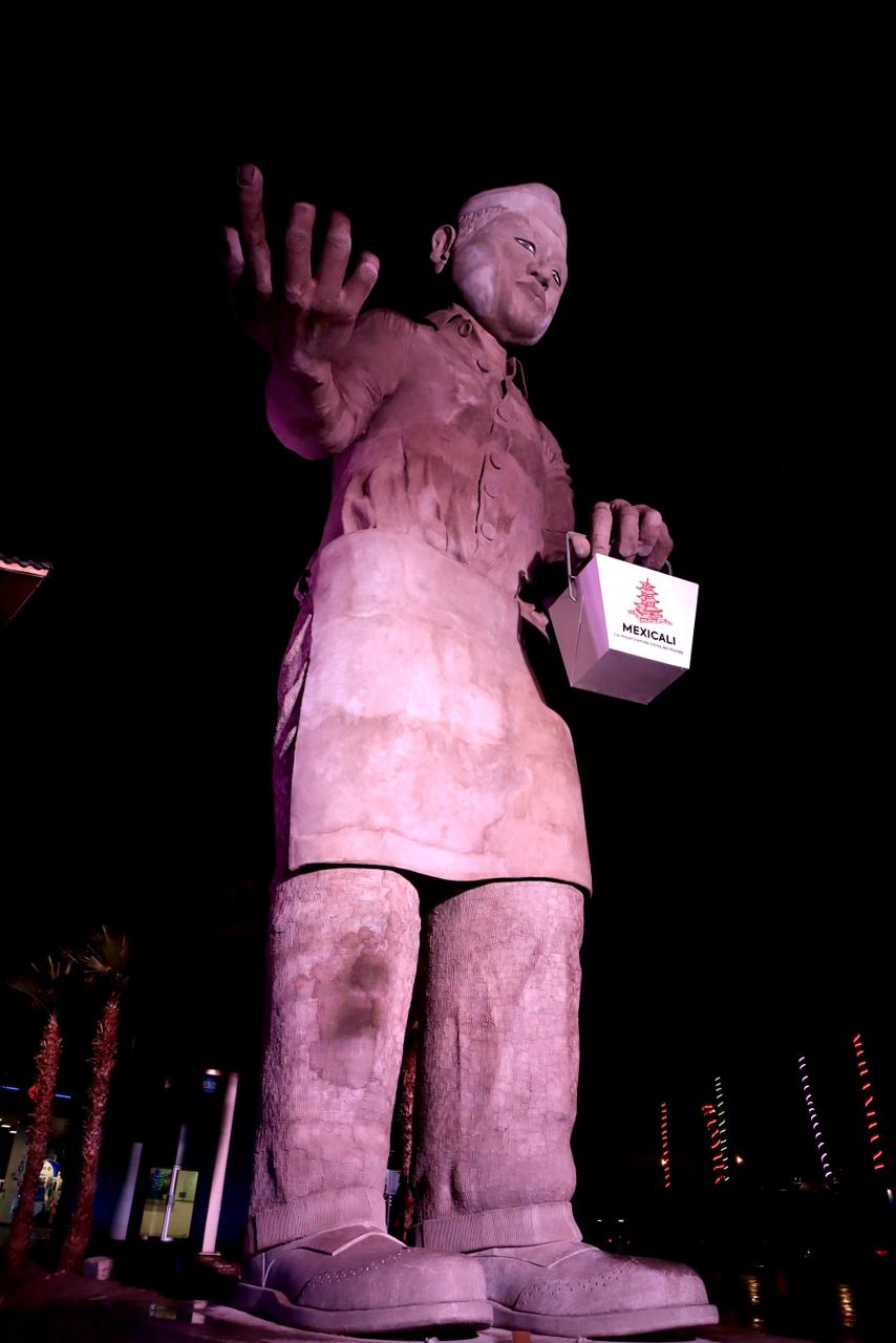 Después de varias retrasos en la entrega de esta obra, por fin los mexicalenses pudieron acudir a tomarse la foto con el Cocinero Chino, que representa la importancia de la comida china para los mexicalenses.